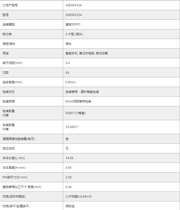 下一篇:PANASONIC窄间距连接器AXE664124D | A4S