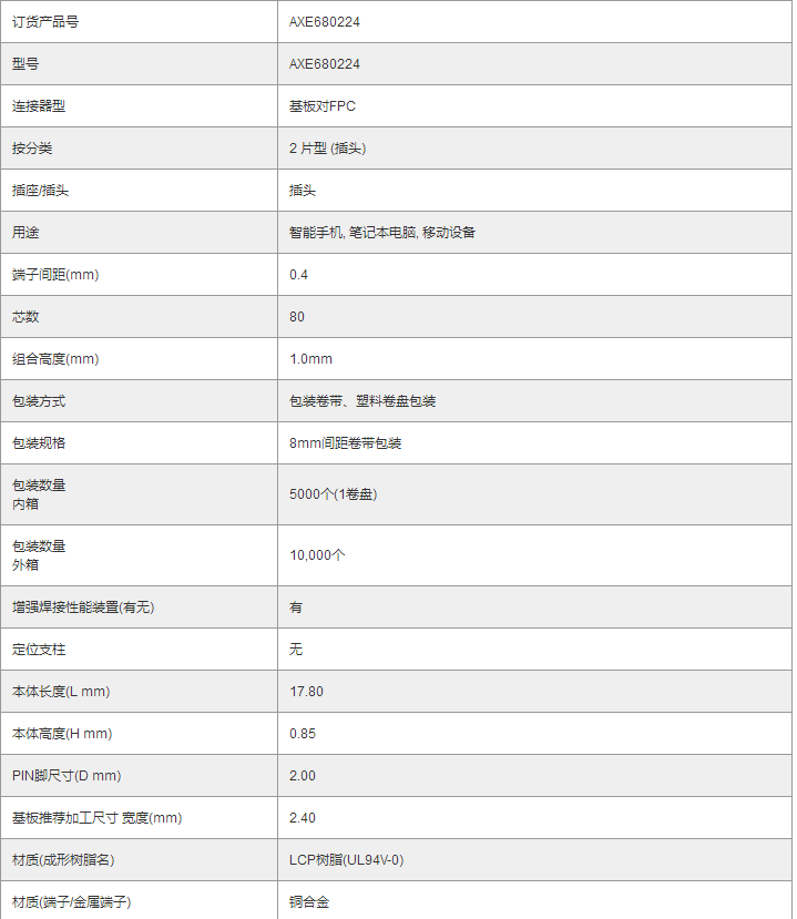 上一篇:PANASONIC窄间距连接器AXE680124 | A4S