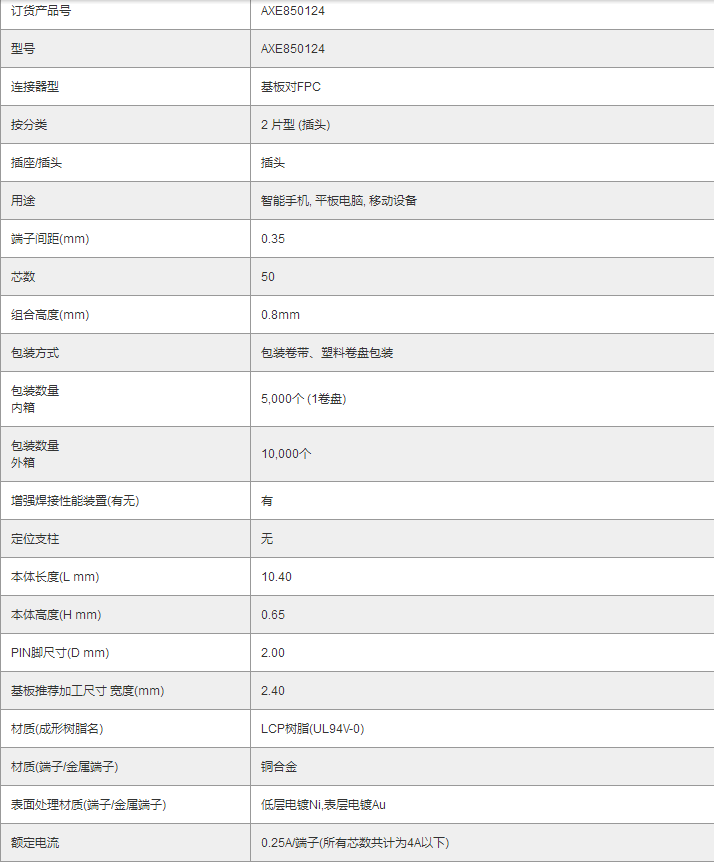 下一篇:PANASONIC窄间距连接器AXE854124 | A35S(