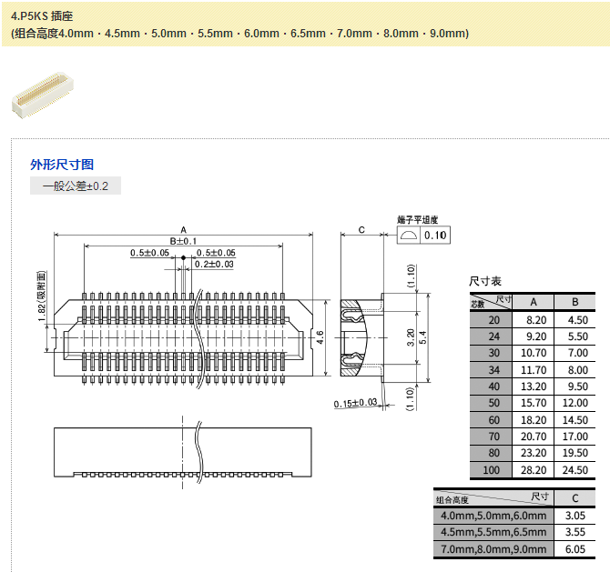 | 端子间距(mm) | 0.5 |